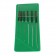 Assortiment de 6 équarrissoirs à 5 pans avec manche plastique. Contenu : ø 0.40 - 1.40 mm. Les équarrissoirs sont utilisés pour agrandir les trous. Tous les équarrissoirs en ont 5 pans sont légèrement coniques formant des arêtes coupantes. Ce kit a sa place sur l'établi de tout horloger.