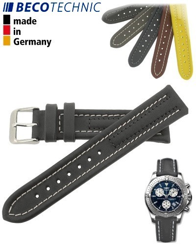Bracelet cuir de qualité supérieure, marque Beco Technic, modèle Arizona 682 veau, gris anthracite et à boucle acier inoxydable, plat, mat, rembourré, largeur 20mm. Beco Technic - 100% Fabriqué en Allemagne.