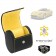 Ce etui de voyage noir et jaune (Ferrari) permet le rangement de un montre de toute taille. Elle contient un coussin en velours de largeur 5cm pouvant accueillir les montres de tous diamètres. La structure extérieure du coffret est recouverte de cuir véritable noir avec coutures jaunes qui lui confère un look résolument moderne. Dimensions: 85 x 70 x 95 mm.