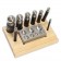 S1 DELUXE PRO8: un jeu complet en acier de bouterolle de formage composé comme suit: 8 bouterolles avec têtes polies de 5 à 27 mm et emboutir forme cubique: les trous sont profonds et sans point de centre. Très bien polis, ils forment exactement la demi-boule. Toutes les pièces sont trempées, rectifiées et polies pour obtenir des résultats impeccables. Diamètres de bouterolles: 5, 8, 11, 14, 17, 19, 24 und 27mm. Fourni sur socle en bois. Ce jeu d'outils est un petit équipement de base pour les orfèvres, horlogers, argentiers et bricoleurs qui souhaitent déformer des tôles. Peu coûteux et utile à la fois.