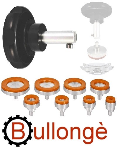 Cet ouvre-boîtier BULLONGÈ VIDE-8 est le complément logique à l'ouvre-boîtier professionnel ou premium. Il produit, lors de pressions ou de rotations, une légère aspiration, dévissant en toute douceur les fonds vissés, sans laisser de traces. L´ensemble VIDE-8 comprend 8 ventouses avec tous les diamètres courants, une volant et un support transparent en acrylique.