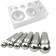 BULLONGÈ® PRO8 ensemble sur socle en bois, composé de : 8 bouterolles complètement poli de 5 à 27 mm + emboutir. Diamètres de bouterolles: 5, 8, 11, 14, 17, 19, 24 und 27mm.