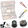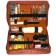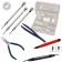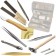 Poche cuir haut de gamme (brun) contenant 27 outils d'horloger et accessoires : Ouvre-boîtier, 12 embouts pour ouvre-boîtier pro dans un carton, couteau d'horloger acier inox pour ouvrir les fonds vissés, 3 tournevis d'horloger, brucelle laiton, 2 brucelles en acier inox antimagnétique, brucelle plastique pour le changement des piles, pince plate acier inox, rodoir, marteau d'horloger, plat et à tête sphérique, chiffon de lustrage pour montres, assortiment de barrettes à ressort dans une boîte plastique pratique, mandrin à manche bois, 2 outils chasse-goupilles 0,8 + 1,0 mm, petit étau, pose-aiguilles, brosse en fibre de verre, arrache-aiguilles, pointeau de pose et dépose des barrettes, loupe d'horloger, support en plastique pour le raccourcissement des bracelets métal, graisse silicone pour joints de fonds, coussinets de travail.