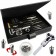 Set d'outillage d'horlogerie S1 HORLOGICAL 1 contenant : 1) ouvre-boîtier avec 12 broches filetées à finition acier, dans une boîte séparée, 2) Couteau pour boîtier entièrement en acier, 3) 3 tournevis professionnels suisses, 4) Pointeau de pose/dépose suisse, 5) loupe à grossissement x4 suisse, 6) 2 chasse-goupilles, 7) bloc de maintient pour bracelet, 8) marteau d'horloger, 9) brucelles anti-magnétique d'horlogerie, 10) tubule métallique avec pièces de rechange / lames, 11) boîte rabattable haut de gamme avec pièces.