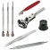 Set d’outillage d’horlogerie S1 "MAGNUM EXCLUSIF", contenant: ouvre-boîtier pour fonds vissés (18 vissent-mors), couteau ouvre-boîtier pour fonds pressés, brucelle acier inox, tournevis 1,0 - 1,2 et 1,4mm, outil pour barrettes de style suisse à embouts vissés, bloc de fixation pour bracelets, 3 outils chasse-goupilles pour raccourcir les bracelets - 0.6 - 0.8 et 1.0mm, marteau d’horloger – un côté matière plastique, loupe d’horloger grossissement 3,3, cartouche métal contenant des lames de rechange pour tournevis et 2 embouts supplémentaires pour le pointeau pour barrettes. Fourni dans coffret en aluminium de haute qualité.