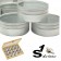 Coffret en bois avec 12 boîtes de rangement en aluminium avec couvercles verre qui conviennent parfaitement au stockage de pièces détachées pour montres par exemple pour les joints, les vis, les tiges de remontoir, les ancres, les barrettes à ressort et bien plus encore. Dimentsions des boîtes : Ø 40mm, hauteur 18mm. Dimensiones de la boîte : 18,5 x 14,5 x 3 cm.