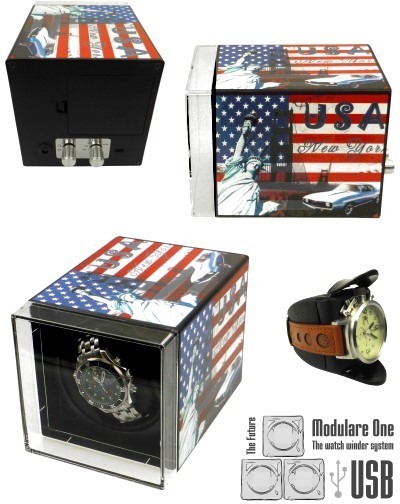 Silencieux et modulaire remontoir de montre en plusieurs dessins combinables. Les remontoirs pour montre MODULARE ONE USB sont adaptés au remontage continu d'une montre automatique par module. Le sens de rotation au choix et les différents cycles de rotation permettent de remonter presque toutes les montres mécaniques. L'originalité de cette série est la possibilité d'obtenir un système en associant jusqu'à 30 modules qui peuvent. 3 options d'alimentation: Option 1) MODULAIRES PARTAGE DU POUVOIR: Pour stocker plus de montres, 3 Modulares peuvent être combinées. Seulement 1 adaptateur secteur (inclus) et câble USB (non fourni) est nécessaire. Option 2) MODULAIRES PARTAGE DU POUVOIR USB: Pour stocker plus de montres, peut 5, 10, 20 ou 30 Modulares peuvent être combinées. Seulement 1 HUB USB avec alimentation est nécessaire. Option 3) MODULARE ONE peut également être utilisé avec des piles (4x AA). Détails techniques: PROGRAMABLE QUALITÉ, 650 à 1950 rotations par jour. 3 directions: dans le sens horaire, antihoraire ou changement. Silencieux et durable, faible abrasion mécanique. FITS TOUTS LES MONTRES: couvercle anti-poussière spacieuse pour les montres avec de grands logements. Tournez mesure coussin de montre universelle. Adapté pour les montres lourds.