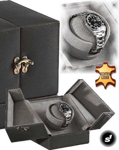 Que ce soit en voyage, dans un coffre-fort ou dans le salon, ce remontoir ultra-silencieux S1 Start One Mobile DELUXE (Véritable cuir de buffle) fait toujours bonne figure. Il est actionné par un système de micro-puce breveté (950 rotat. / jour). Adaptateur réseau 230 V fourni. Dimensions: 15 x 16 x 17 cm, poids env. 1,3 kg.